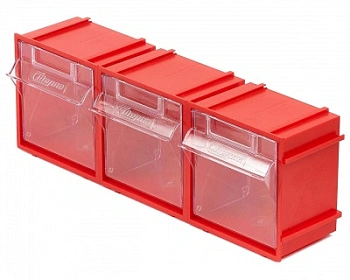 Комплект из 5-ти коробов откидных Стелла-техник F-105-1 (105х87х112мм.), красный, прозрачный служит для хранения мелкоштучных предметов. Данные короба с помощью специальных пазов соединяются друг с другом по всем четырем сторонам, благодаря чему, пользователь может выстроить систему хранения по желаемым ему габаритным размерам. Внутренние ячейки короба не подвержены случайному опрокидыванию. Откидная ячейка обеспечивают быстрый доступ к необходимым предметам. В случае необходимости полного высыпания или наполнения внутренние ячейки легко извлекается. Полезный внутренний размер ячеек 88х65х70мм. Специальный пластик, из которого выполнен короб, выдерживает значительные нагрузки и обладает оптимальной эластичностью. На задней стенке короба присутствуют отверстия для крепления, через которые можно легко прикрепить к стене, как отдельно каждый, так и целый собранный набор из коробов, любого количества. Обзорность содержимого сквозь прозрачные внутренние ячейки, наличие отсека для информационных бирок, легкое извлечение внутреннего короба для опустошения и наполнения, все это является неоспоримым преимуществом откидных коробов серии F. Температура эксплуатации от -10 до +70С.