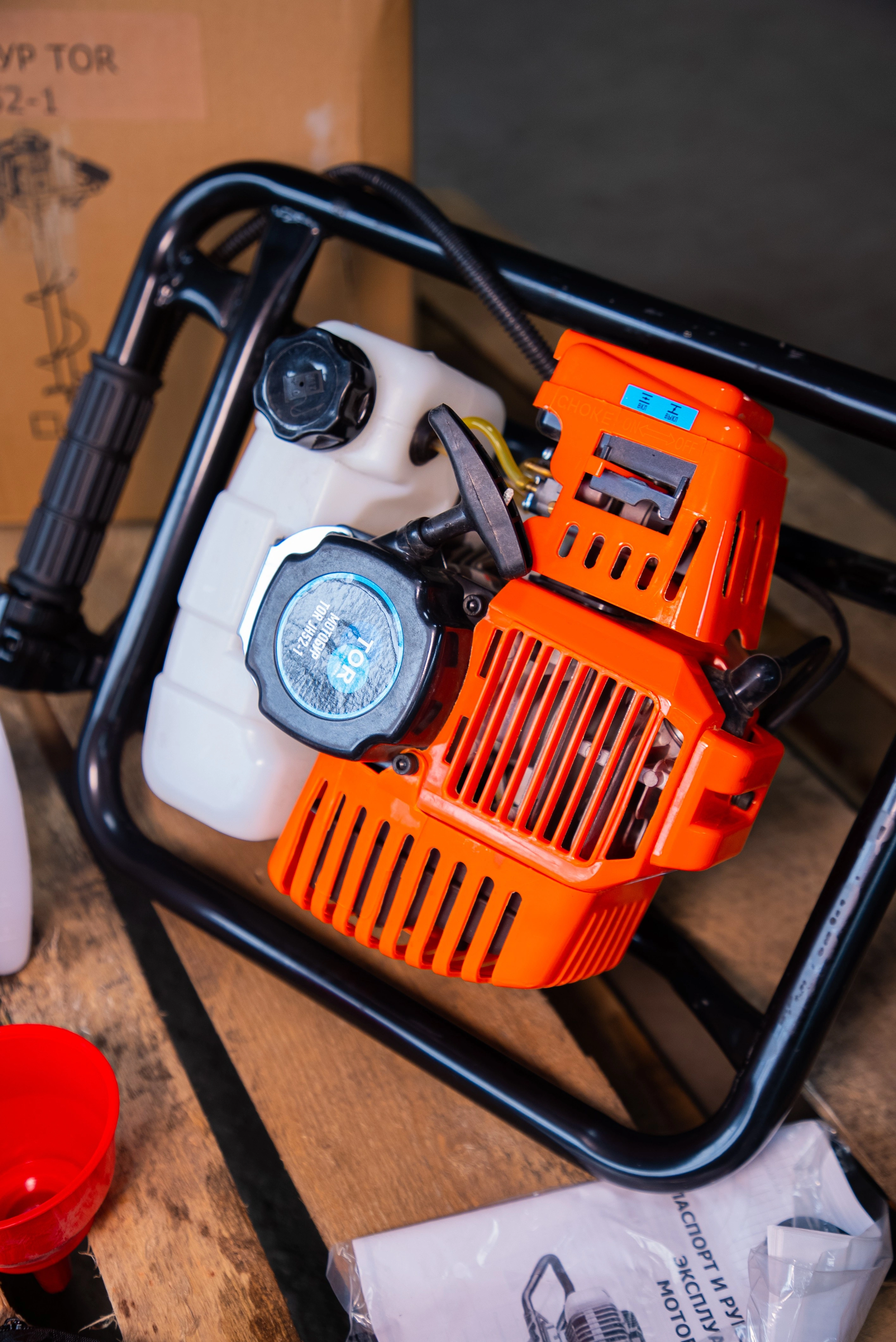 Мотобур TOR JH52-1 без шнека с объемом двигателя 52см3 и максимальной мощностью 1,8 кВт. - Управление рассчитано на 1 оператора - Все органы управления удобно расположены на рукояти - 2тактный бензиновый двигатель неприхотлив к условиям работы - Вместительный бензобак 1,3 л - Подходит для работы в теплое и холодное время года - Простой и безопасный в использовании Применяется при строительстве фундаментов, заборов, установке опор и столбов, бурении лунок и т.д. Может бурить отверстии в мёрзлом земле, льду, глине, торфе, песке и других видах грунта. Поставляется без шнека. Шнеки и удлинители в ассортименте: Шнек 100*800 мм для мотобуров JH 1027877 Шнек 150*800 мм для мотобуров JH 1027878 Шнек 200*800 мм для мотобуров JH 1027879 Шнек 250*800 мм для мотобуров JH 1027880 Шнек 300*800 мм для мотобуров JH 1027881 Шнек двухзаходный 200*800 мм для мотобуров JH 1027890 Шнек двухзаходный 150*800 мм для мотобуров JH 1027891 Удлинитель 500 мм для шнека мотобуровов JH 1027887 Удлинитель 900 мм для шнека мотобуровов JH 1027889