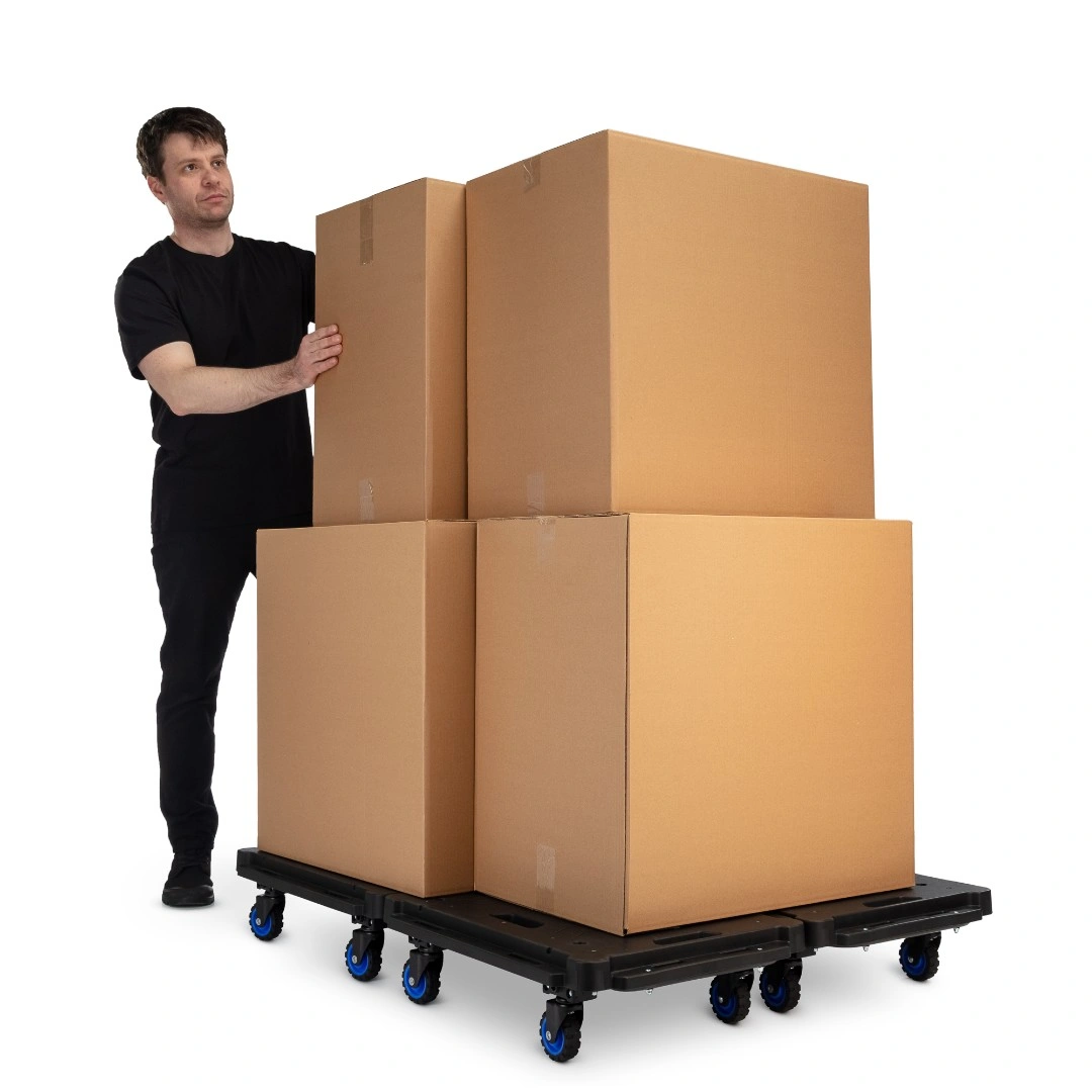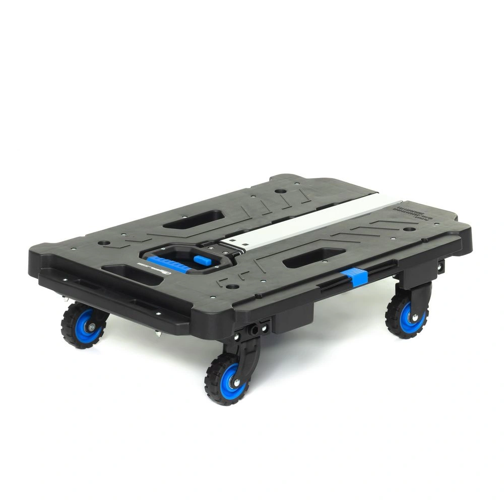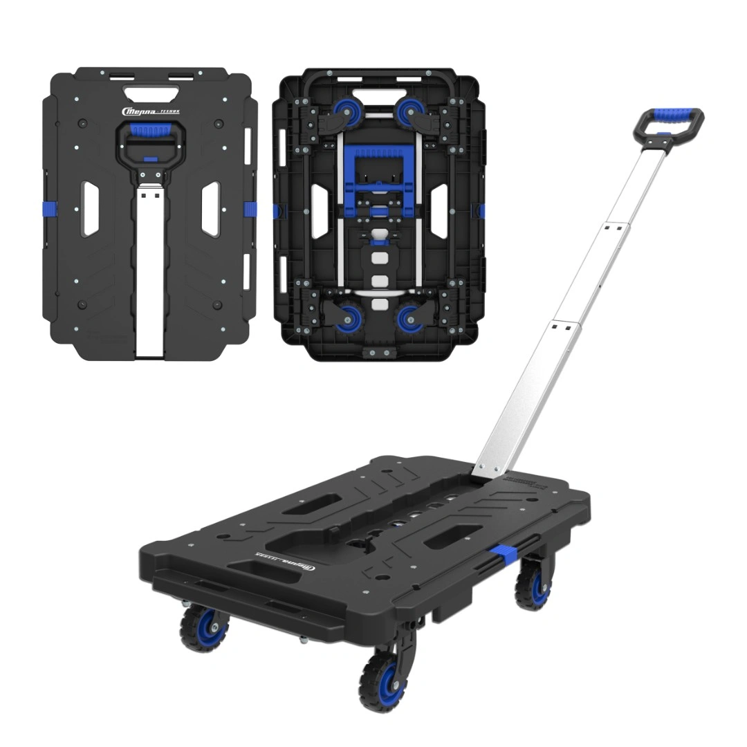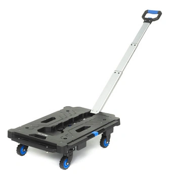 Тележка платформенная FW-99HA складная. Материал: алюминий, сталь, пластик. Грузоподъемность 137 кг. Тележка имеет четыре колеса из термопластичной резины диаметром 76 мм, шириной 25 мм. Расстояние между колесами (колея) 420 мм. Уникальность тележки в боковых креплениях, позволяющих подсоединять по сторонам дополнительные платформы аналогичных тележек в неограниченных количествах, для перемещения негабаритных, длинных / широких грузов (рулонов, труб), а удобная ручка, позволяет перемещать / тянуть груз за собой.